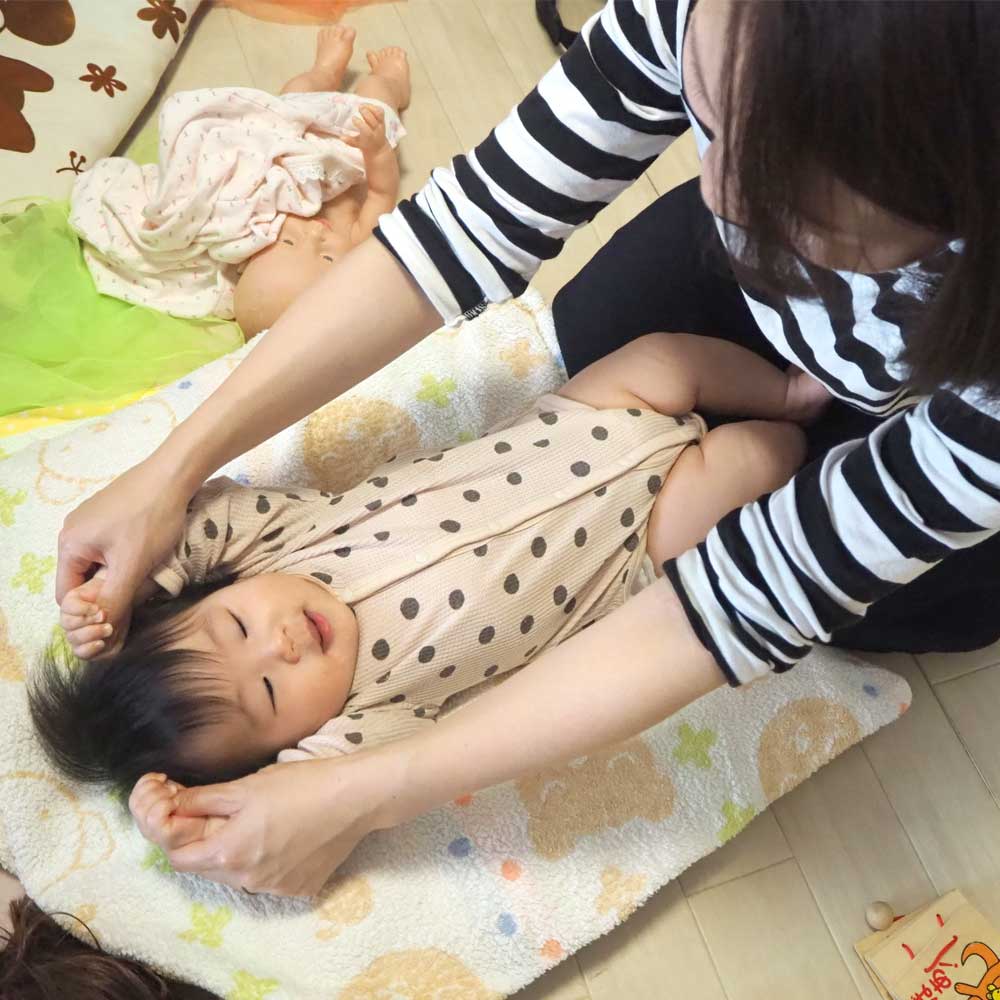 わらべうたベビーマッサージと同じ歌で踊る産後のママのためのエクササイズです。