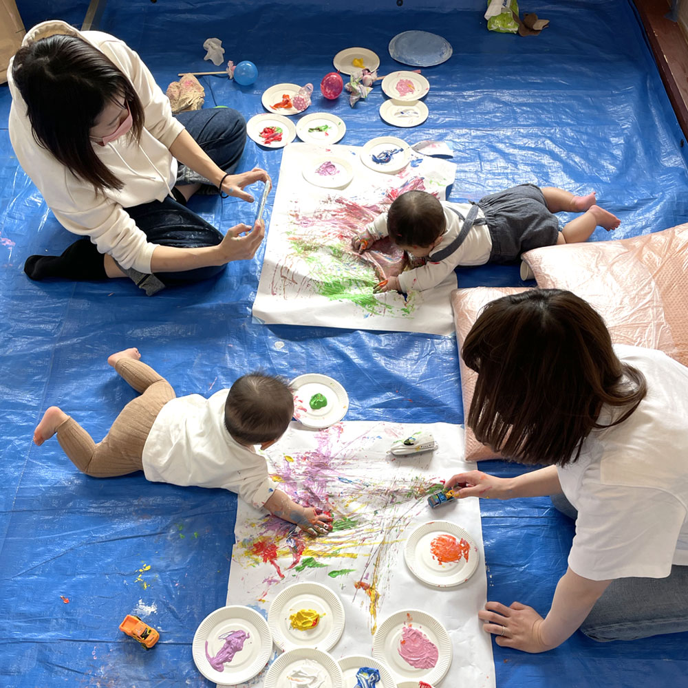 何歳からえのぐ遊びしますか?決めてますか?過去半年で60組以上の方が参加してくれました。絵の具を手で触った感触や気持ち。